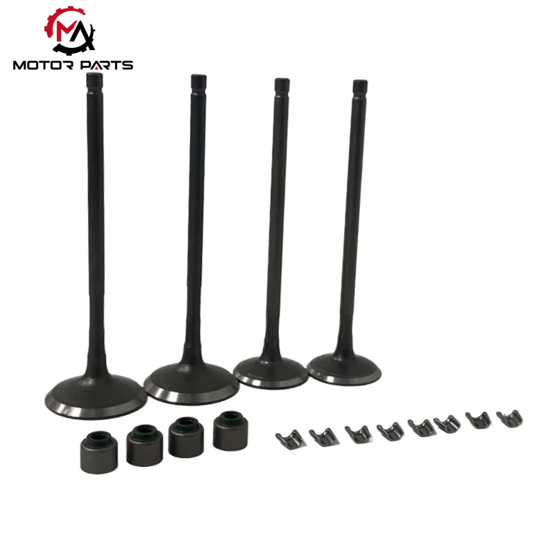Imuventtiilit: Valmistettu erittäin lujasta ruostumattomasta teräksestä, jossa yhdistyvät erinomainen korroosionkestävyys ja korkeiden lämpötilojen kestävyys. Ne kestävät korkean lämpötilan 800-1000 ℃ moottorin sisällä ja niillä on hyvä sitkeys, mikä estää pitkäaikaisen suurtaajuisen liikkeen aiheuttaman muodonmuutoksen tai rikkoutumisen, mikä varmistaa tasaisen ja esteettömän imukanavan pitkään.